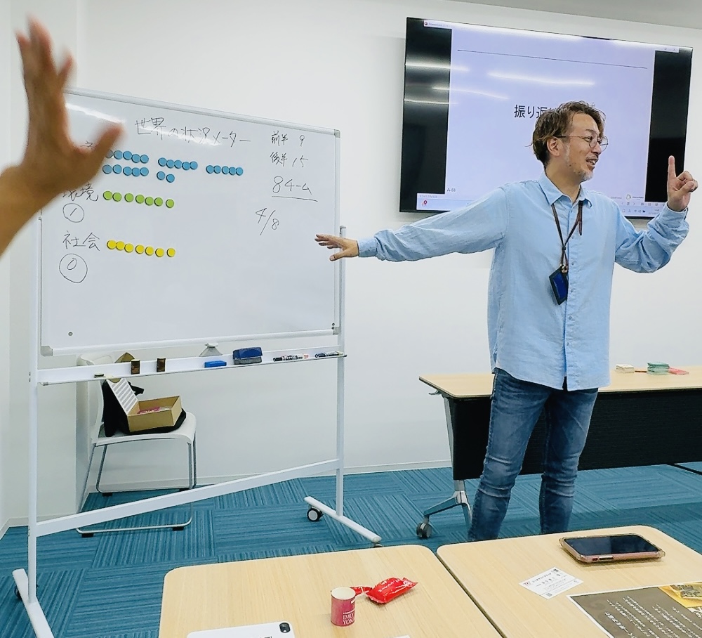 SDGsカードゲームに参加された株式会社トオヤリペアテックの遠矢社長。
