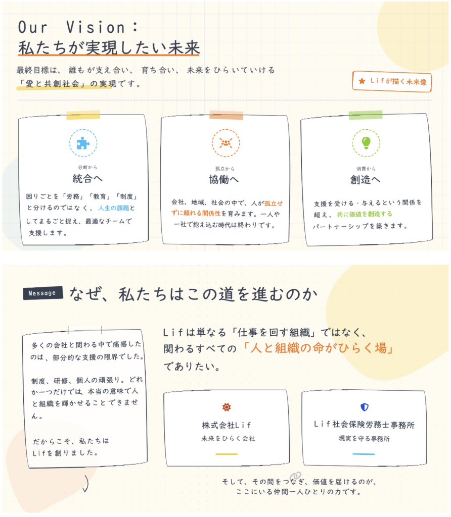 「もし理念が“挑戦”だったら、挑戦しない人はNGになってしまう。Lifの理念は“愛と共創”。